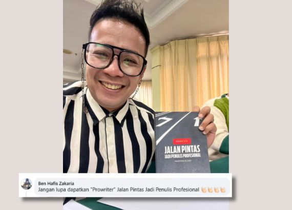Semua topik ini ada dalam buku PROWRITER dan peserta boleh membuat ulang kaji menggunakan buku ini di kediaman atau di tempat kerja mereka selepas bengkel penulisan ini berakhir. Berbaloi kan menganjurkan bengkel penulisan dengan PROWRITER? Dapat bengkel bersemuka, dapat lembaran kerja dan dapat pula buku teks sebagai rujukan.